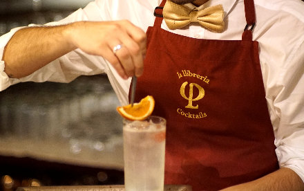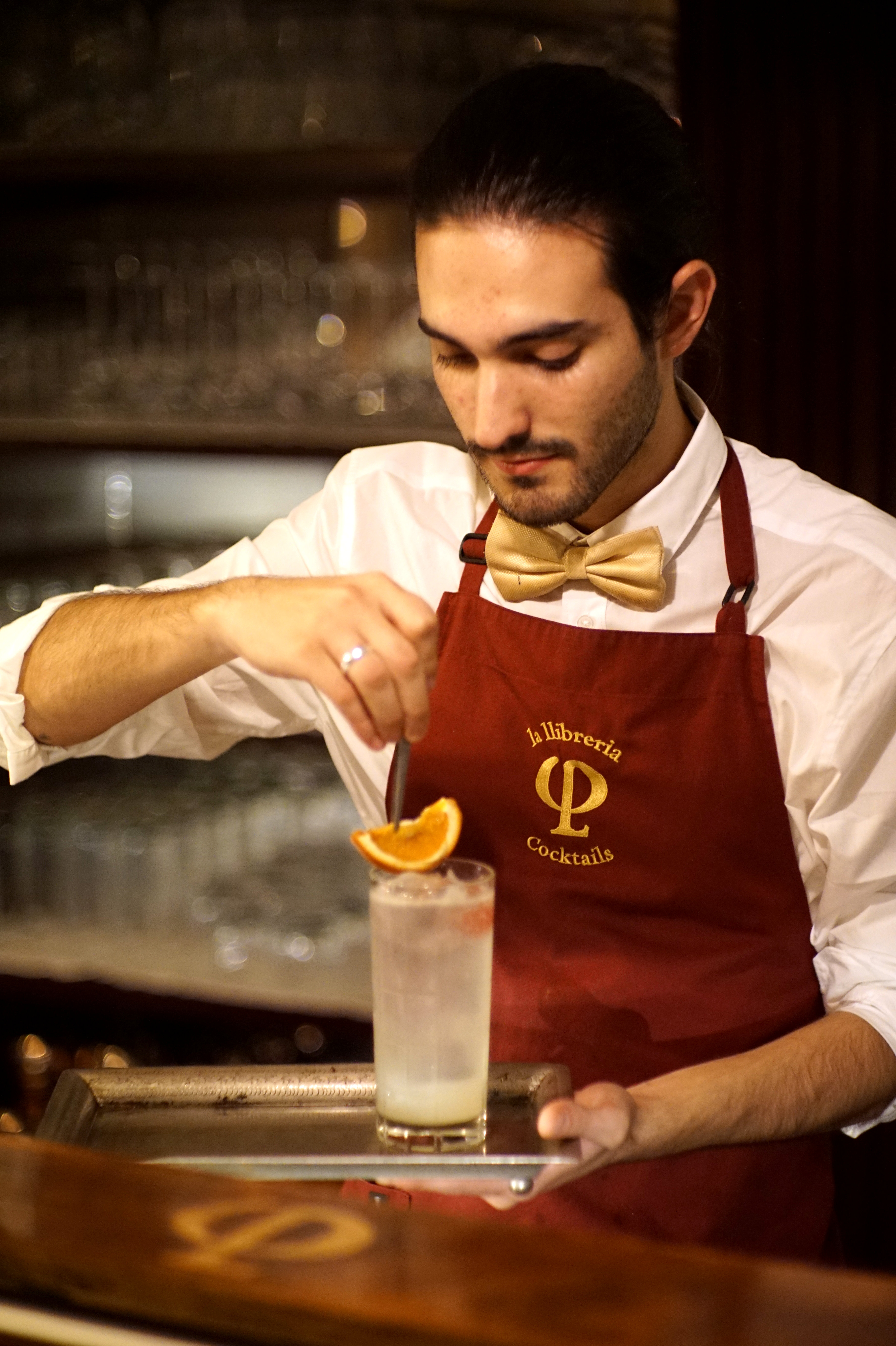 La llibrería es un espacio dedicado a la cultura e historia de la coctelería. La librería corona la barra principal, en ella descansan con cuidado miles de volúmenes que conforman la colección de la casa, la luz de sus vitrinas inspira nuestro nombre así como la fuente de nuestra filosofía. A través de sus cortinas se puede descubrir la sala de mapas y el obrador: lugar donde producimos y almacenamos nuestros ingredientes y bebidas. La oferta de cócteles la conforman bebidas de todo el mundo, en un viaje a través de la ilusión y el sabor, desde las recetas más clásicas hasta nuestras creaciones más modernas.